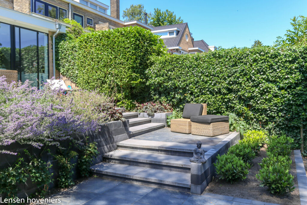 Het eerste jaar na de aanleg is het belangrijk om voldoende tijd aan het tuinonderhoud te besteden. Als de prairiebeplanting volgroeid is, heeft het onkruid minder ruimte om te groeien. De beukenhagen zijn in mooie golvende lijnen gesnoeid, dit versterkt het tuinontwerp. Door een tuinonderhoudsabonnement is er de zekerheid dat er op het juiste moment het juiste onderhoud zal worden uitgevoerd. Voor meer informatie over een tuinonderhoudsabonnement, klik hier. Voor meer informatie over de Golfclub in Heelsum, klik hier.