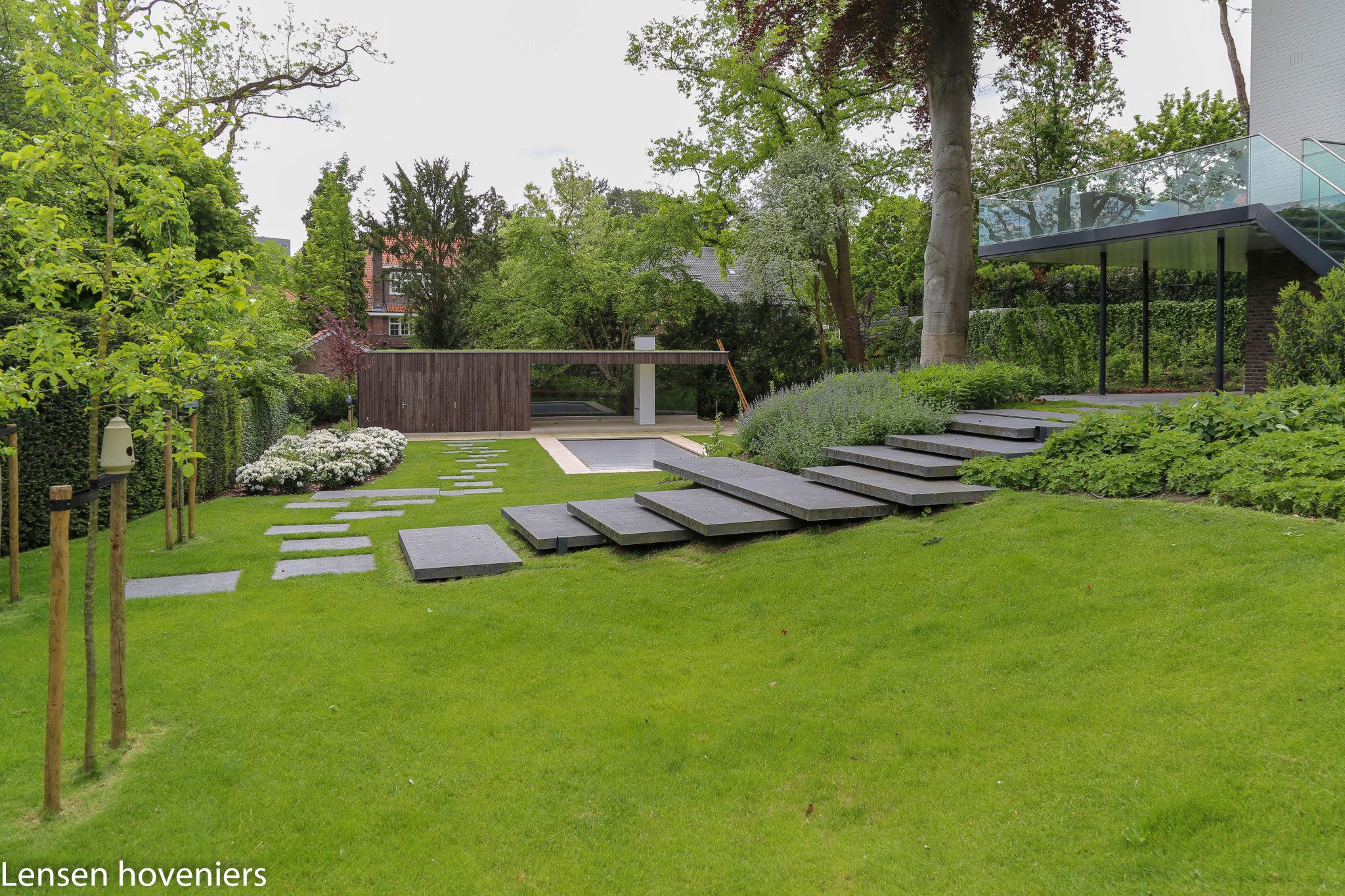 Voor de renovatie van mijn tuin ben ik uitgekomen bij Lensen. Het tuinontwerp past echt bij ons en ook de aanleg verliep (ondanks de vele regen, complimenten aan de hoveniers) voorspoedig.