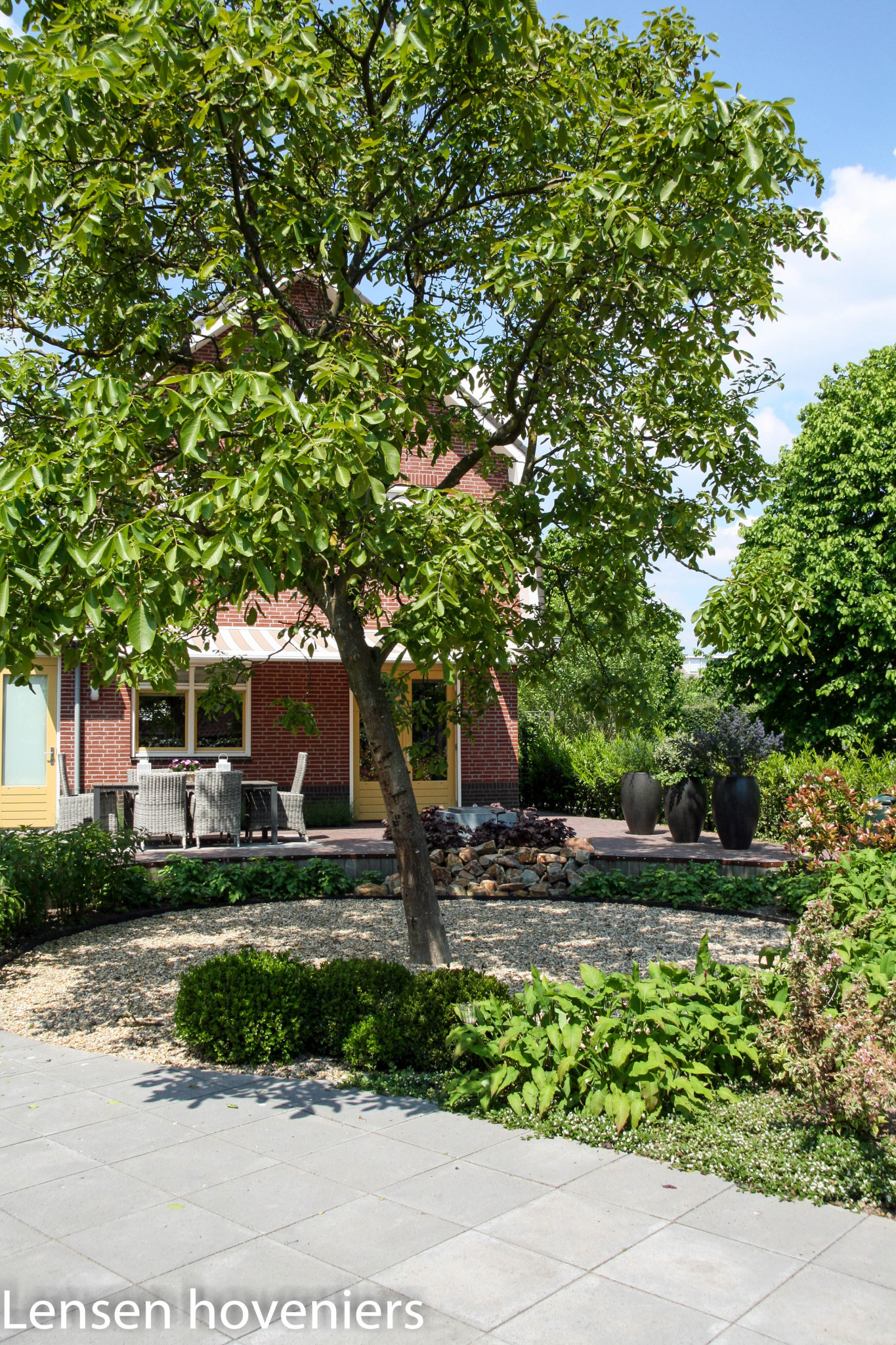 Ter voorbereiding op de renovatie van mijn achtertuin hebben we uitgebreid met elkaar gesproken om mijn wensen duidelijk te krijgen. Daar nam Joost ruim de tijd voor. Uiteindelijk kwam hij terug met een prachtig ontwerp voor mijn nieuwe tuin. Alles werd goed uitgelegd, compleet met voorbeelden van de plantensoorten die in het ontwerp waren opgenomen. In maart was het zover! Met twee heel prettige medewerkers werd de chaos in mijn tuin omgevormd tot een prachtige achtertuin. Alles werd aan het eind van de dag netjes opgeruimd. Een aantal keren werd er tussendoor overlegd over wat ik graag zou willen. Er is drie weken keihard gewerkt en het eindresultaat is erg mooi geworden. Ik geniet met volle teugen van mijn nieuwe achtertuin. Ik kan Lensen van harte aanbevelen!
