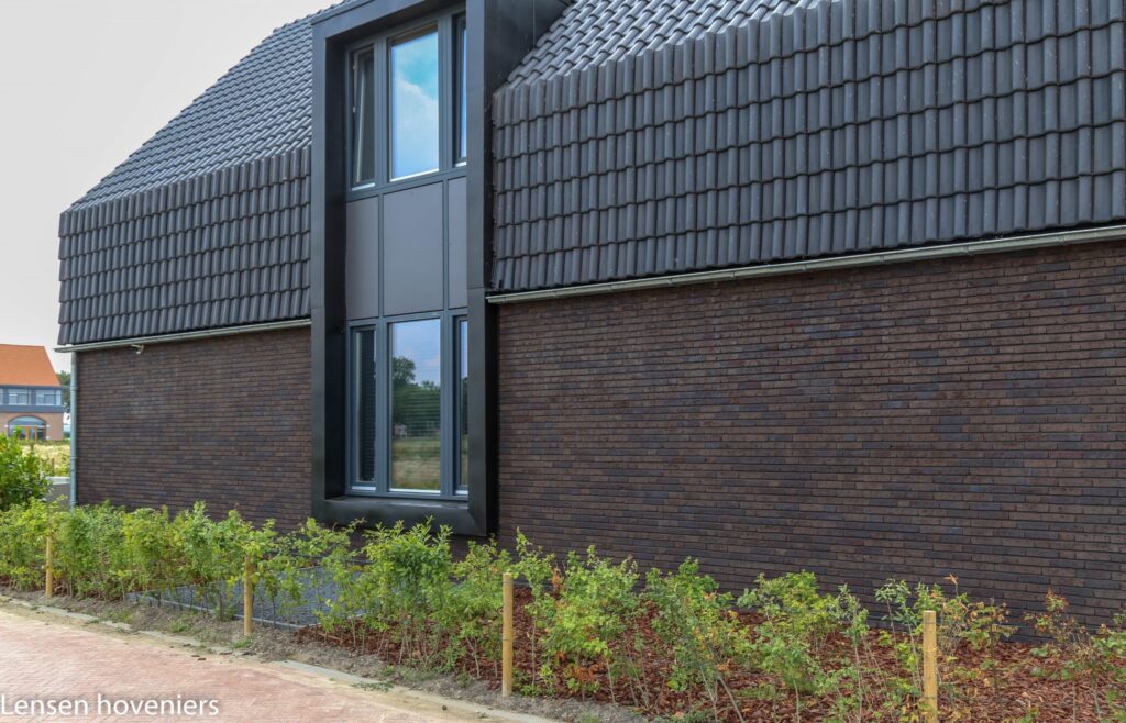 Rhododendrons zijn prachtige, groenblijvende heesters die een aantrekkelijk aanzicht bieden bij de entree van een oprit, tuin of erf. Door de specifieke groei en snoei van Rhododendrons krijgt het geheel een vorm van een “wolk” . De groenblijvende heesters passen prachtig bij het mooie Cortenstalen hekwerk van deze oprit. De Rhododendron wolken zijn een echte meerwaarde voor het aangezicht van deze entree.