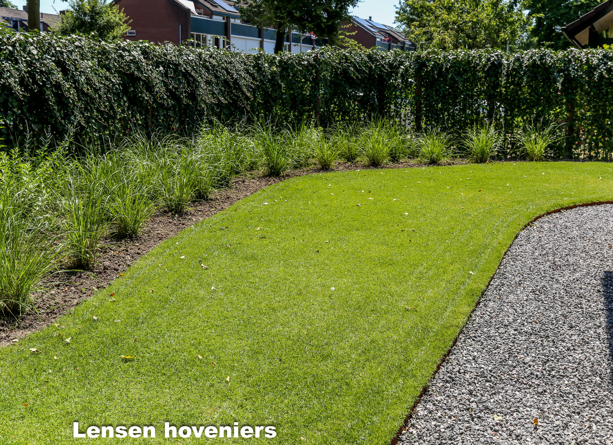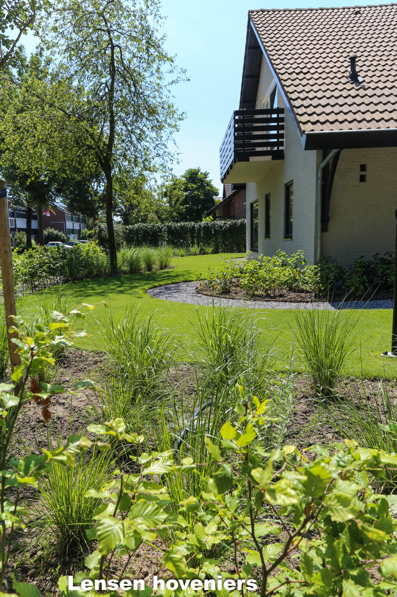 De tuinbezitters houden het tuinonderhoud keurig bij. Het eerste jaar is dit altijd iets meer werk. Doordat de planten nog moeten groeien heeft het onkruid iets meer de ruimte. Het maaien gebeurt door een robotmaaier waardoor het gazon er altijd netjes bij ligt. Voor informatie over tuinonderhoud, klik hier.