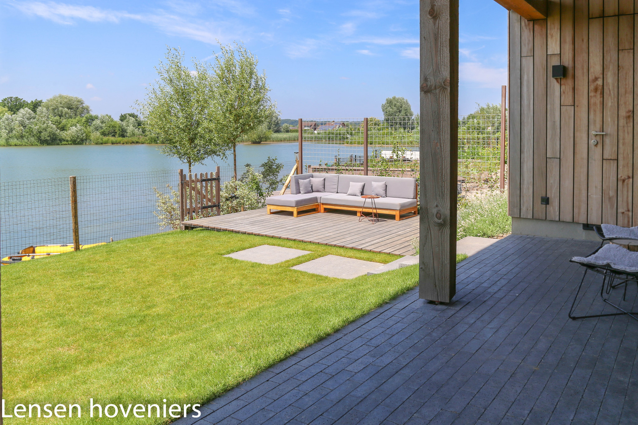Moderne tuin aan het water